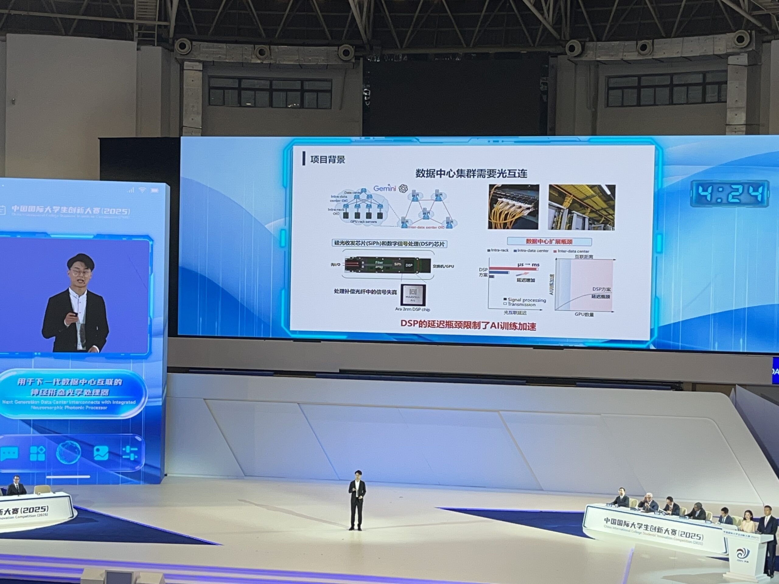 中國國際大學生創新大賽(2025)總決賽於2025年10月13日至15日在河南鄭州舉行。經過激烈角逐,香港中文大學(中大)「 用於下一代資料中心互聯的神經形態光學處理器」 項目獲得全場總季軍。中大學生共有五個項目獲得國家級金獎,兩個項目獲得國家級銀獎及一項目獲得國家級銅獎,成績為全港院校之冠。